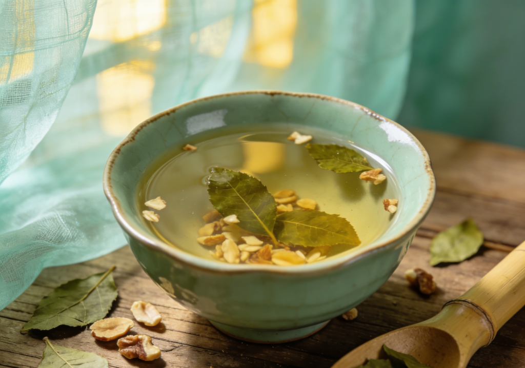枇杷桃仁茶 2026年3月26日 作者 若寒 枇杷桃仁茶组成 枇杷叶 9克 桃仁 5粒 枇杷桃仁茶 枇杷桃仁茶的功效与作用 清肺止咳,润燥滑肠。 枇杷桃仁茶制法 枇杷叶去毛,与桃仁一同加水煎汤,去渣取汁。 代茶饮用。 枇杷桃仁茶禁忌 胃寒呕吐者慎服。