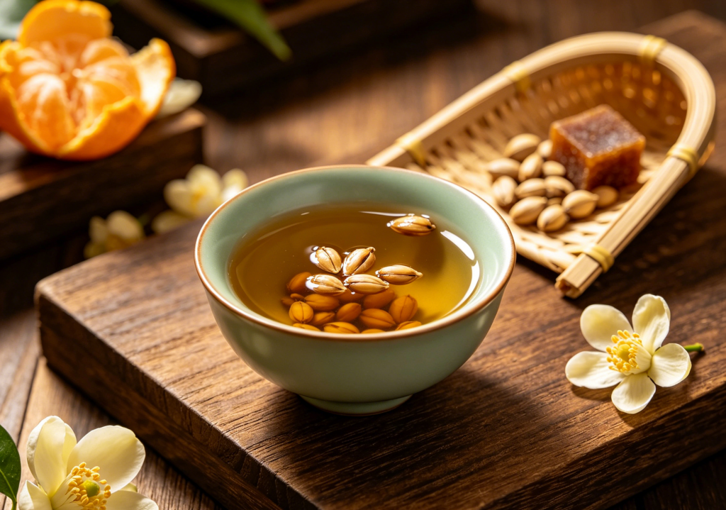 橘核茶 2026年4月13日 作者 若寒 橘核茶组成 橘核 3克 红糖 20克 橘核茶 橘核茶的功效与作用 温肝散寒,理气止痛。适用于脂肪肝等。 橘核茶制法 ①将橘核洗净,放入锅中;②加适量水,用中火煮开后加红糖,待糖化后即成。 橘核茶 每日早晚分饮。
