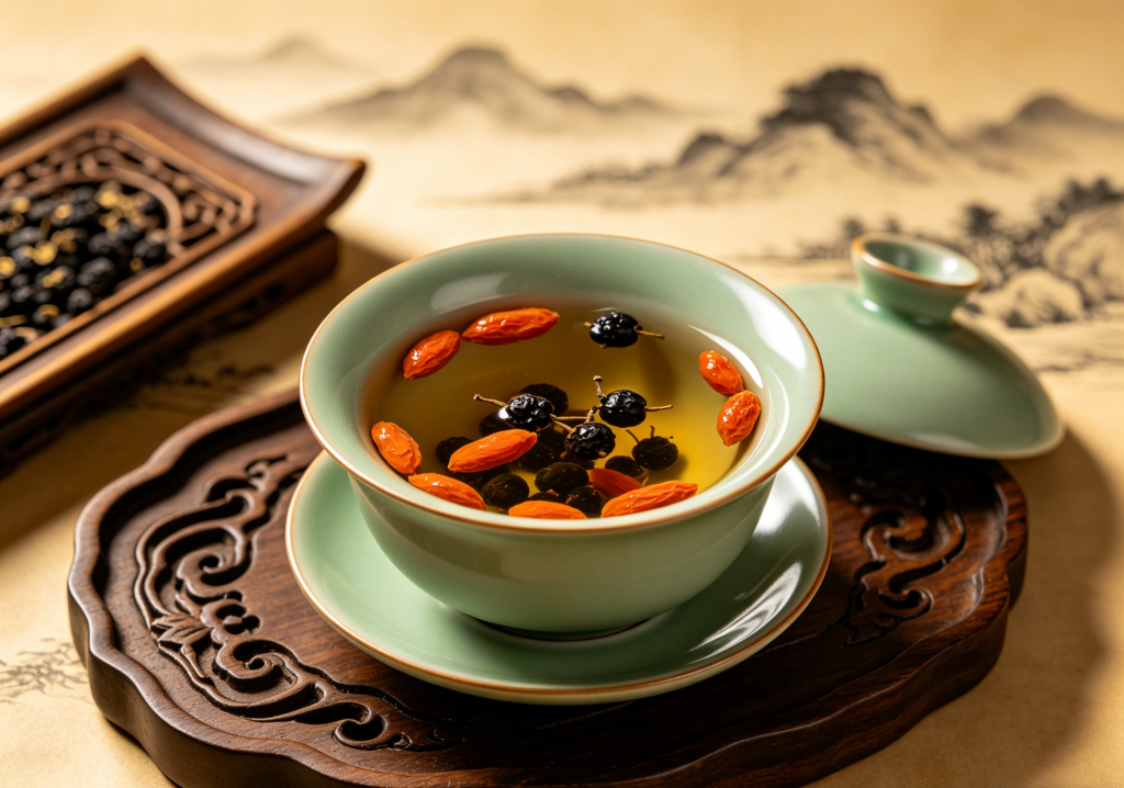 ①将枸杞子,女贞子洗净,放入茶壶中;②用沸水冲泡,加盖闷15分钟。
